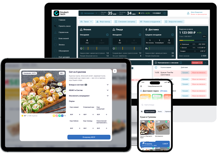 Гуляш выводит ресторанный бизнес на высокий уровень, ведь это кардинально новое, оптимизированное приложение для автоматизации ресторанов доставки