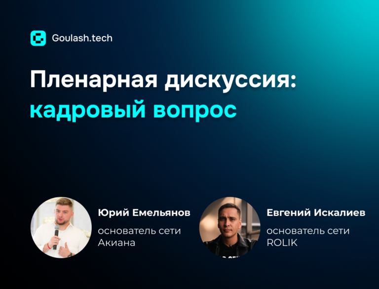 Запись пленарной дискуссии Юрия Емельянова, основателя сети Акиана и Евгения Искалиева, основателя сети ROLIK на конференции Goulash.day